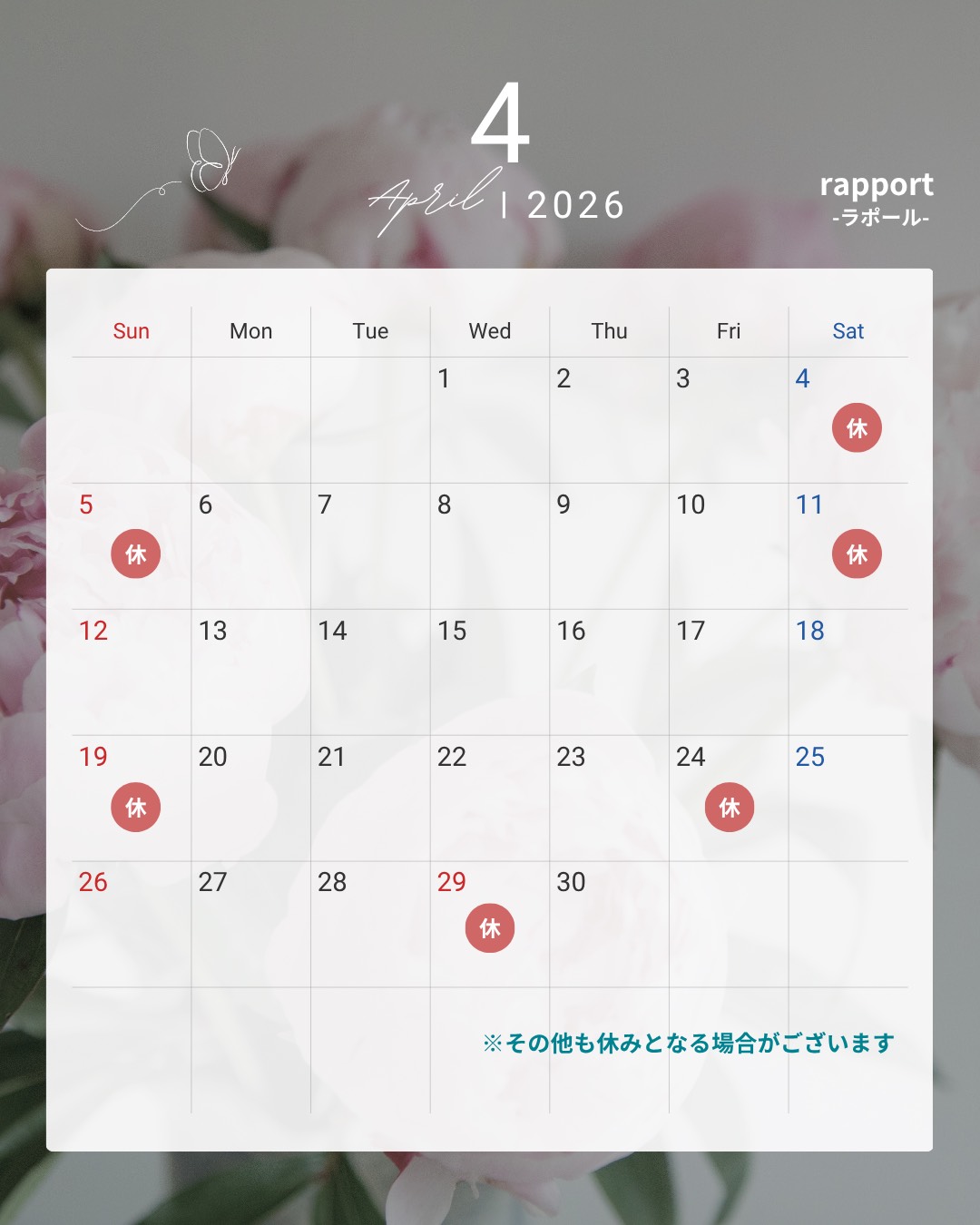 4月の予定になります🌸